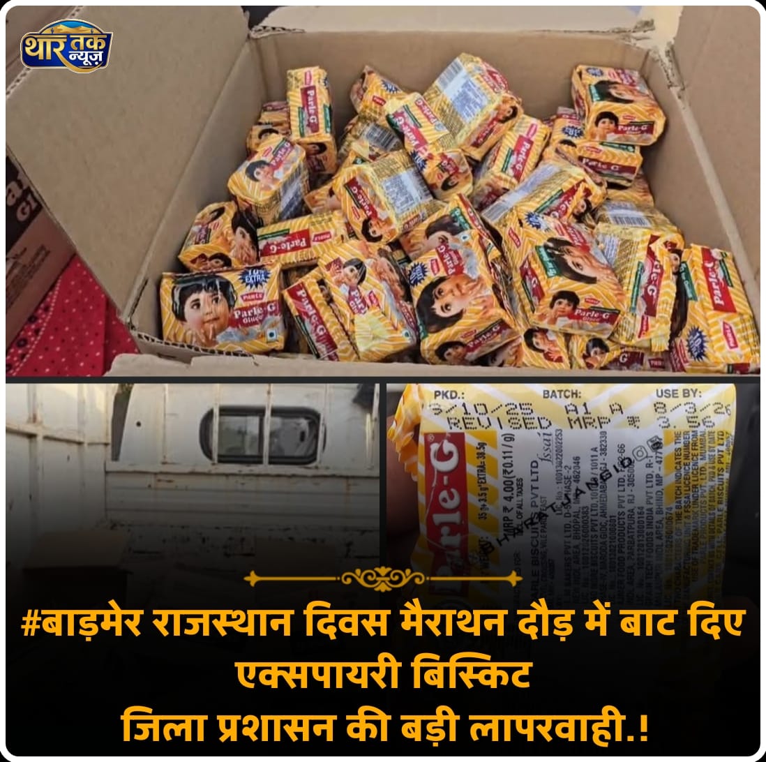 Read moreबाड़मेर: राजस्थान दिवस मैराथन में प्रशासन की बड़ी लापरवाही, युवाओं को बांटे एक्सपायरी डेट के बिस्किट